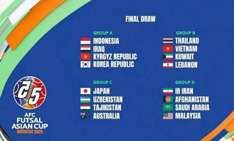 تیم ملی فوتسال افغانستان در قرعهکشی جام ملتهای آسیا ۲۰۲۶، با تیمهای قدرتمند ایران، عربستان سعودی و مالیزیا در گروه “D” همگروه شد.