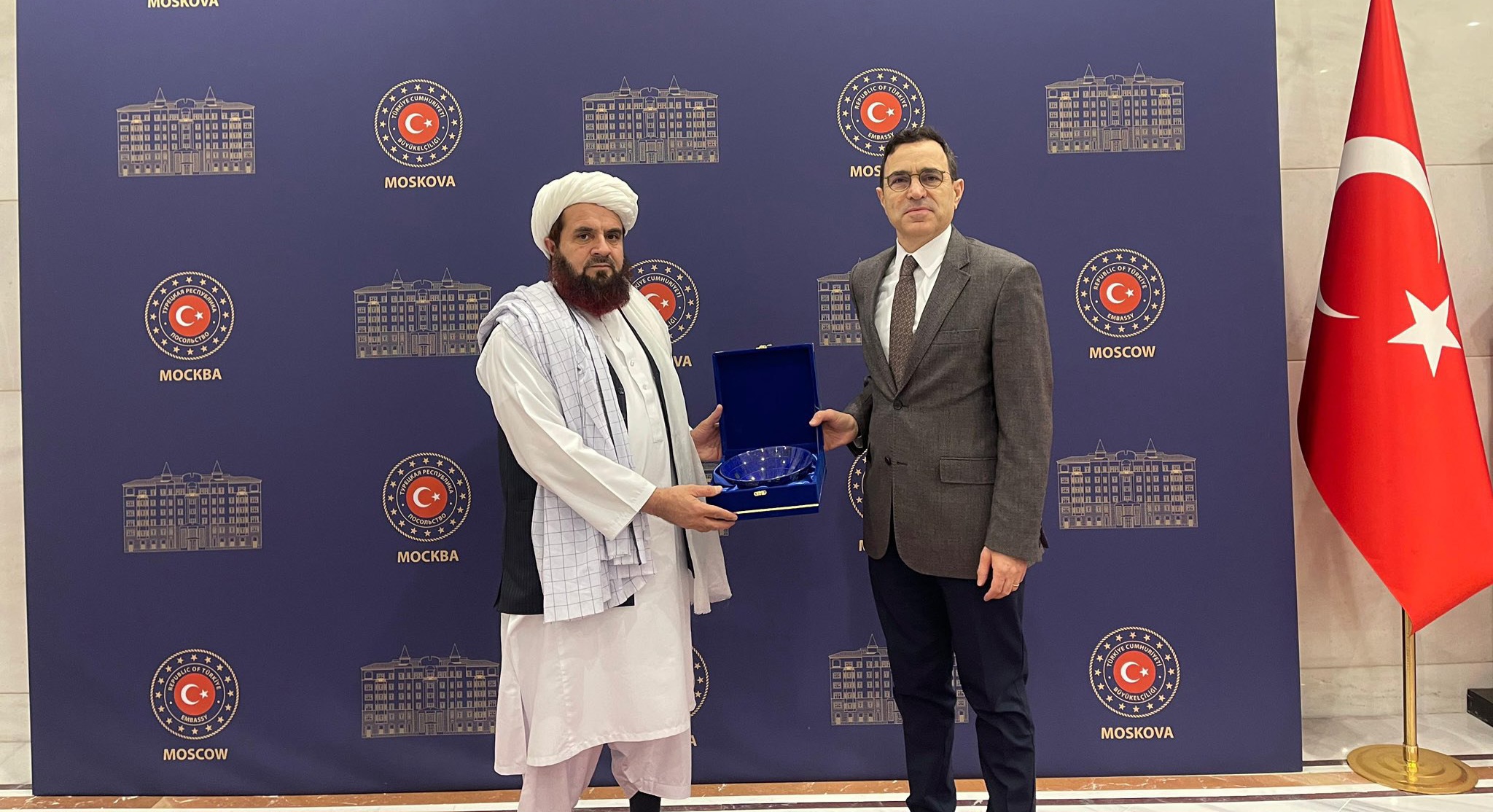 مولوی گلحسن حسن، سفیر کبیر امارت اسلامی افغانستان در روسیه، با تنجو بیلگیچ، سفیر ترکیه در مسکو دیدار تعارفی انجام داد.
