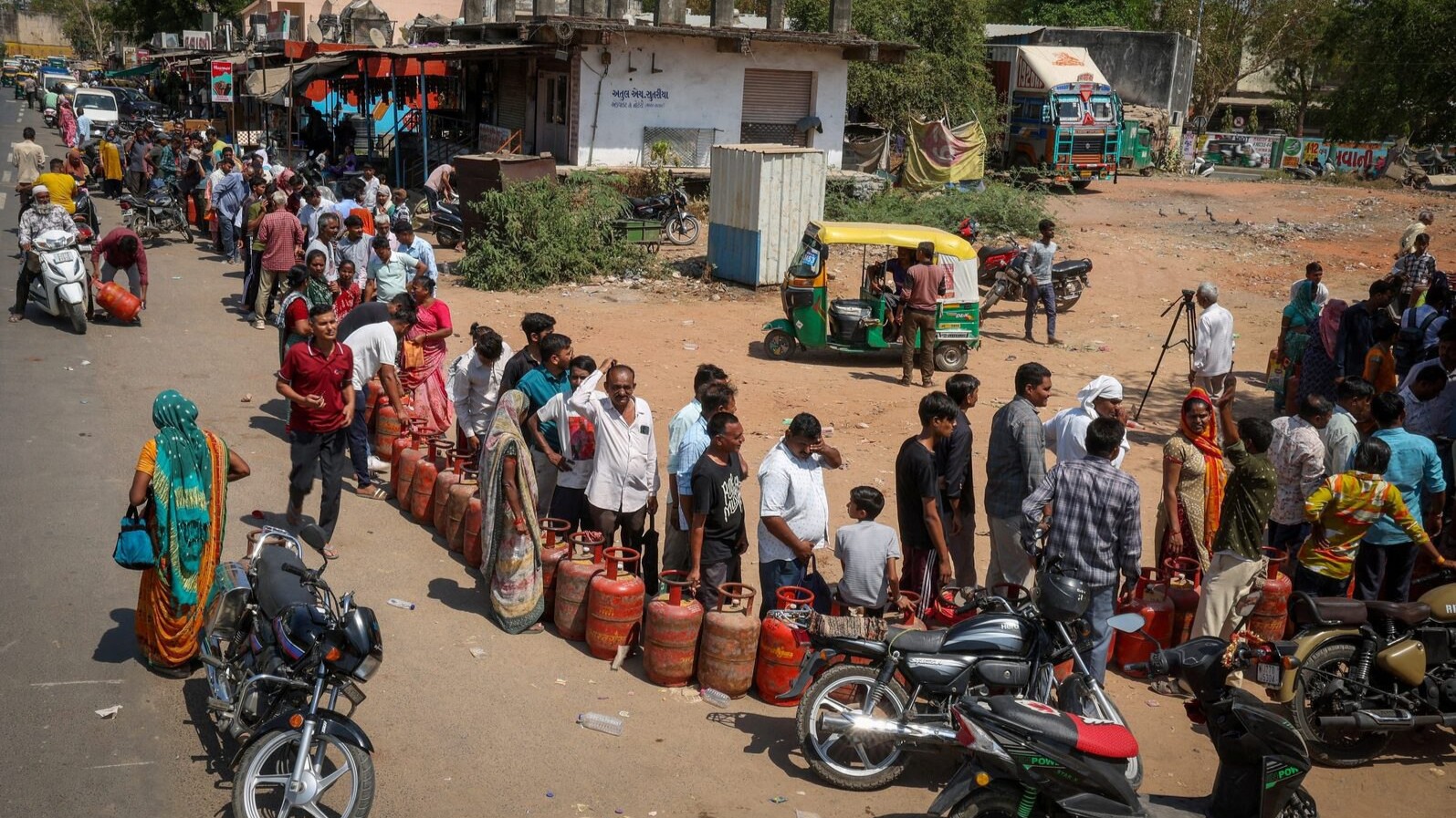 مردم هند در برابر دفاتر پالایشگاهها و مراکز توزیع گاز مایع صفهای طولانی تشکیل دادهاند؛ کمبود شدید گاز مایع پس از توقف تردد دریایی در تنگه هرمز دسترسی به این سوخت را بسیار دشوار کرده است.