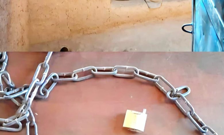 این زن که همسرش در خارج از کشور به سر میبرد، به مدت حدود یک ماه توسط خسر و برخی اعضای خانوادهاش در یک اتاق کوچک محبوس نگه داشته شده و دست و پایش با زنجیر بسته بود.