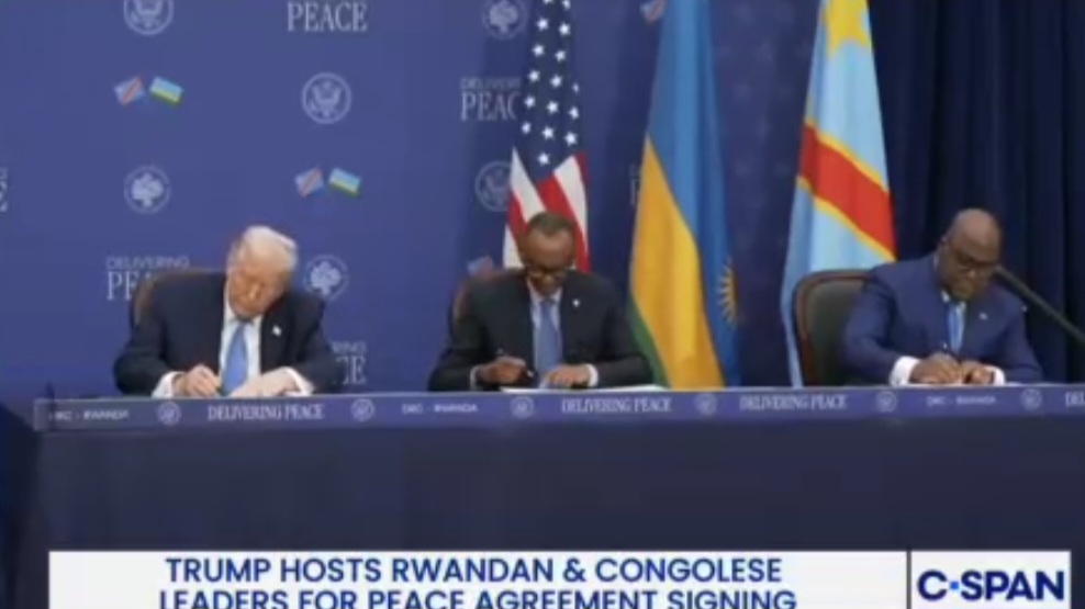 وقّع الرئيس الكونغولي فيليكس تشيسكيدي والرئيس الرواندي بول كاغامي الاتفاقية في معهد دونالد ترامب للسلام بواشنطن.