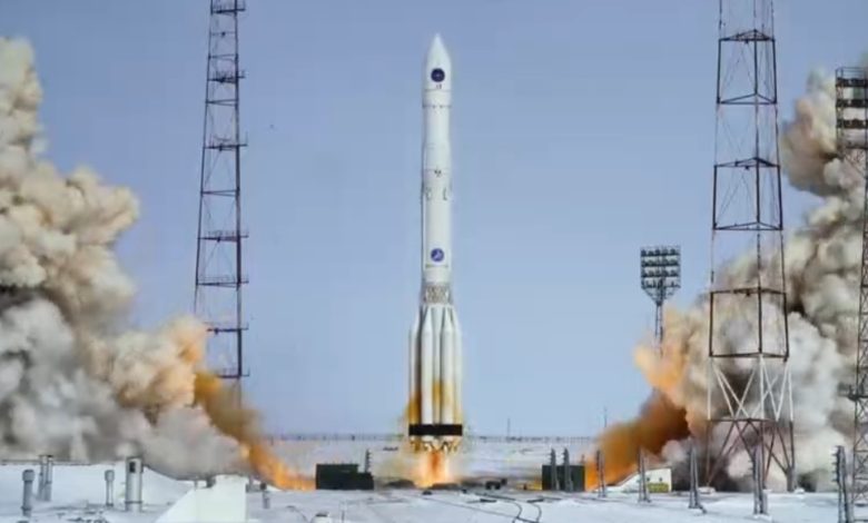 حُمل القمر الصناعي بواسطة صاروخ روسي ثقيل من طراز “بروتون-إم” ووُجّه إلى مدار ثابت بالنسبة للأرض على ارتفاع 36,000 كيلومتر.