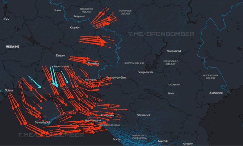 وفقًا لخريطة نشرتها قناة DroneBomber، تنقسم مسارات تحليق الطائرات المسيّرة إلى فئتين: