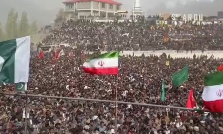 احتشد مئات الآلاف من الباكستانيين في مدينة سكردو تضامناً مع إيران