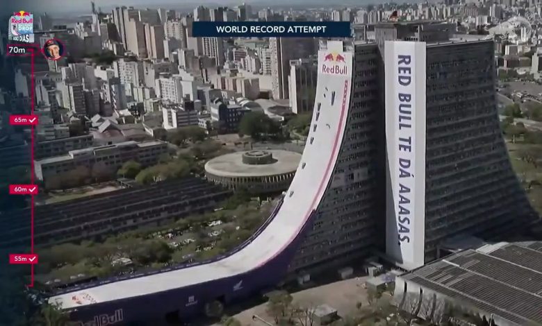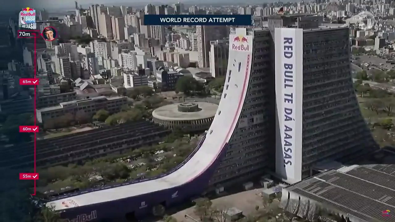 He jumped off the curved facade of the 22-story CAFF building in Porto Alegre, Brazil, and recorded a speed of 103 kilometers per hour.