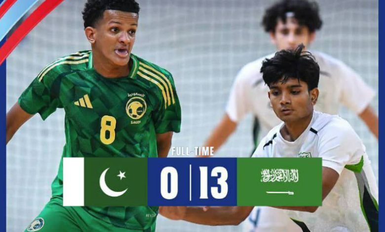 The Saudi Arabian national futsal team defeated and humiliated the Pakistani national team with a stunning 13-point score.