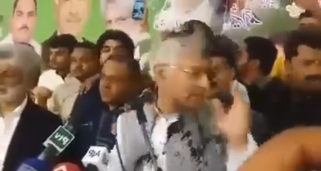 In a controversial incident that sparked public outrage, an unidentified person sprayed black paint on the face of Pakistani Defense Minister Khawaja Asif during a news conference, calling him a “Black face.”
