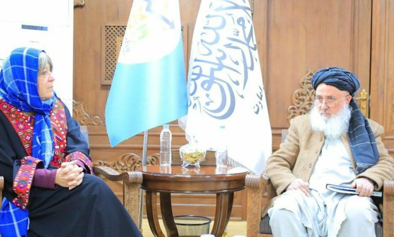 Qari Din Mohammad Hanif, Minister of Economy of the Islamic Emirate of Afghanistan met with Ms. Sana Johnson, Regional Head of Mercy Corps and Ms. Mariana Van Sen, Head of the organization.