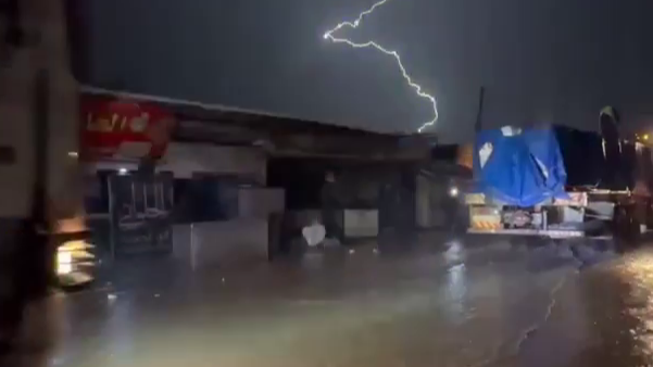 As a new wave of torrential rains accompanied by thunderstorms hit the center and south of the Gaza Strip, dozens of tents housing displaced people in Khan Yunis and the al-Mawasi area were completely submerged.