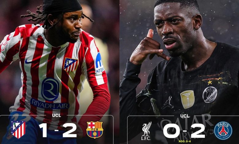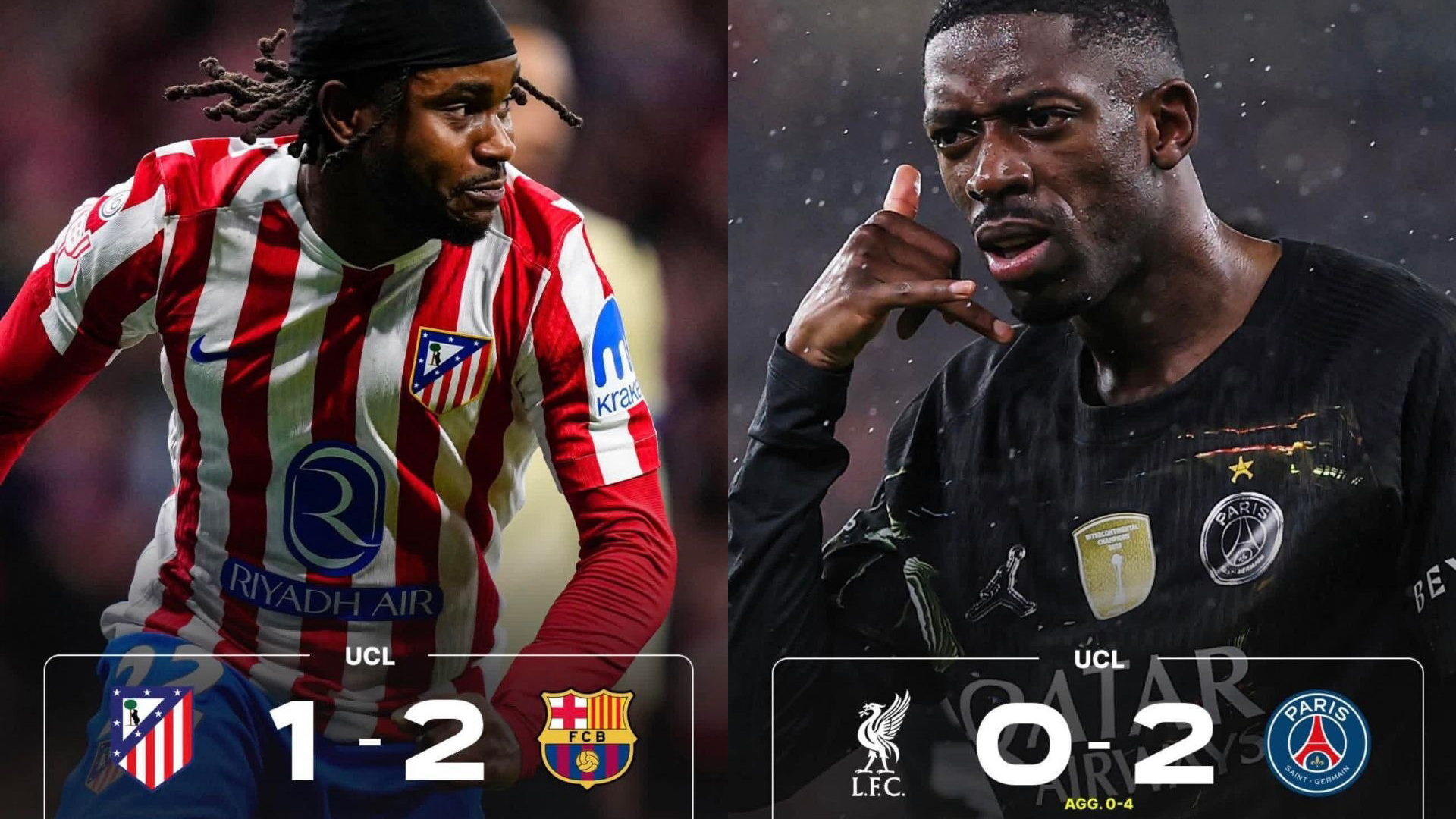 Paris Saint-Germain defeated Liverpool 4-0 on aggregate, while Atletico Madrid defeated Barcelona 3-2.