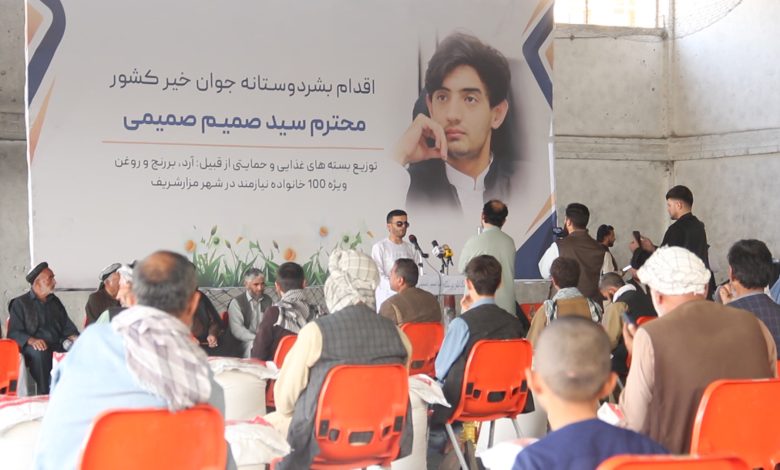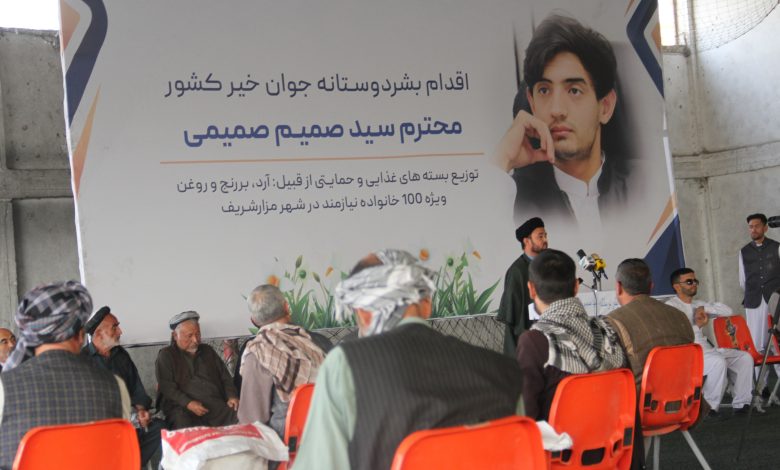 د ژمي د سړې هوا په رارسیدو سره، په متحده ایالاتو کې میشت ځوان افغان خیرخواه سید صمیم صمیمي، ۱۰۰ بې وزلو، اړمنو او معلولو کورنیو ته درې ډوله خوراکي توکي لکه اوړه، وريجې او غوړي وویشل.