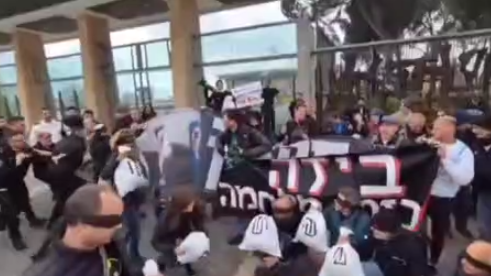 د جګړې مخالفین، چې د اسراییلي پوځ د دوه ګوني پوځي بودیجې د تصویب په وړاندې یې اعتراض کاوه، د پیسو سمبولیک کڅوړې یې لیږدولې او د بنیامین نتانیاهو د جګړې پالیسو د غندلو لپاره یې “شرم دې وي” شعارونه ورکول.