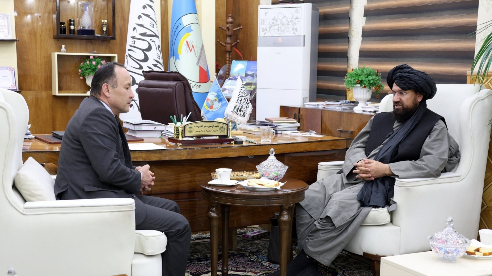 د افغانستان د اسلامي امارت د اوبو او انرژۍ مرستیال وزیر مجیب الرحمن عمر اخوندزاده په کابل کې د قزاقستان له سفیر ګیز اکبروف سره وکتل او خبرې یې وکړې.